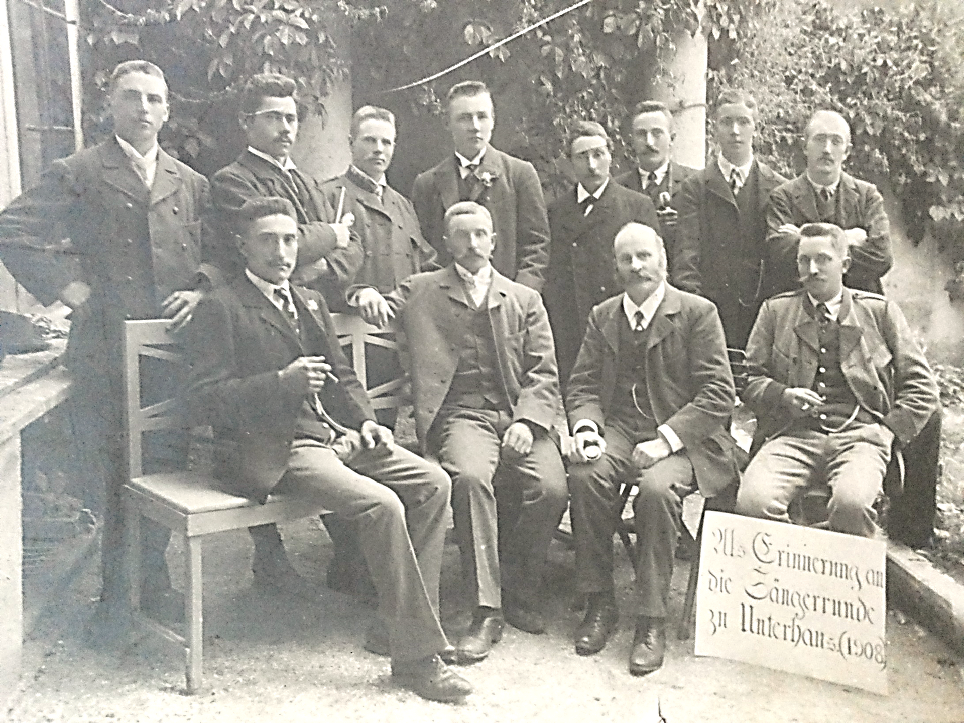 Erst 1908 festigte sich unter dem neuen Vorstand Josef Egger sen., Kaufmann in Wirlsdorf, und Edwin Winkler, Lehrer, als Chormeister das Vereinsgefüge und im September dieses Jahres zählte der Verein wieder 20 Mitglieder. Eine rege Vereinstätigkeit, insbesondere Probenarbeit begann und erstmals wurden wieder 2 Liedertafeln, und zwar am 31. Dezember 1908 (Silvester-Liedertafel) und am 21. März 1909 (Frühlings-Liedertafel), abgehalten.